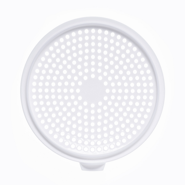 Roosterinzet van het voormalige product Cheesmart Junior. Goed om te weten: Bij dit product kan de filterinzet van het deksel worden gescheiden, bij de huidige Cheesmart Junior de filterinzet stevig in het deksel is geïntegreerd.