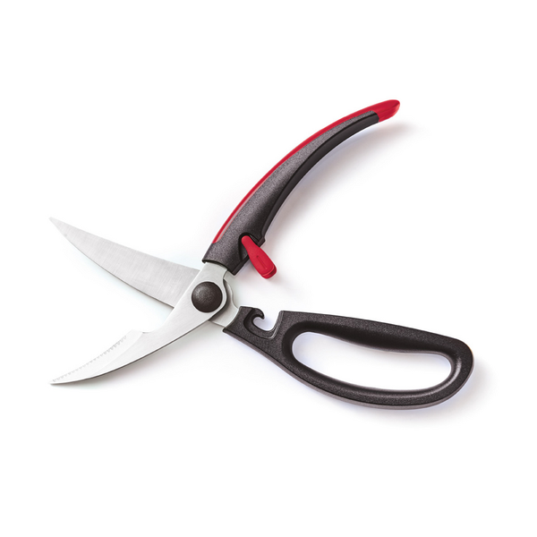 - De schaar zorgt voor het soepel snijden van rauwe en gekookte kip, botten en huid.