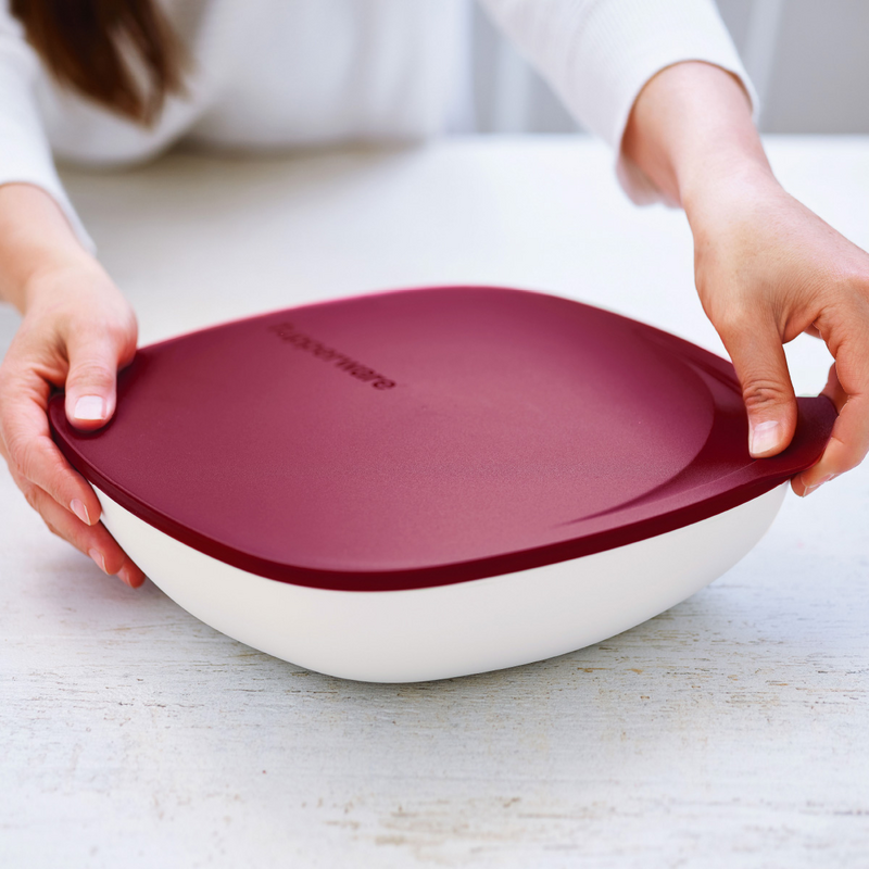 Gemeenschappelijke grootte: Een tafel met verschillende soorten salade, mooi opgemaakte groentesticks, brood, gesneden fruit maakt echt indruk. De Allegra-serie biedt de kom in de juiste maat, inclusief die met 2,5 liter.