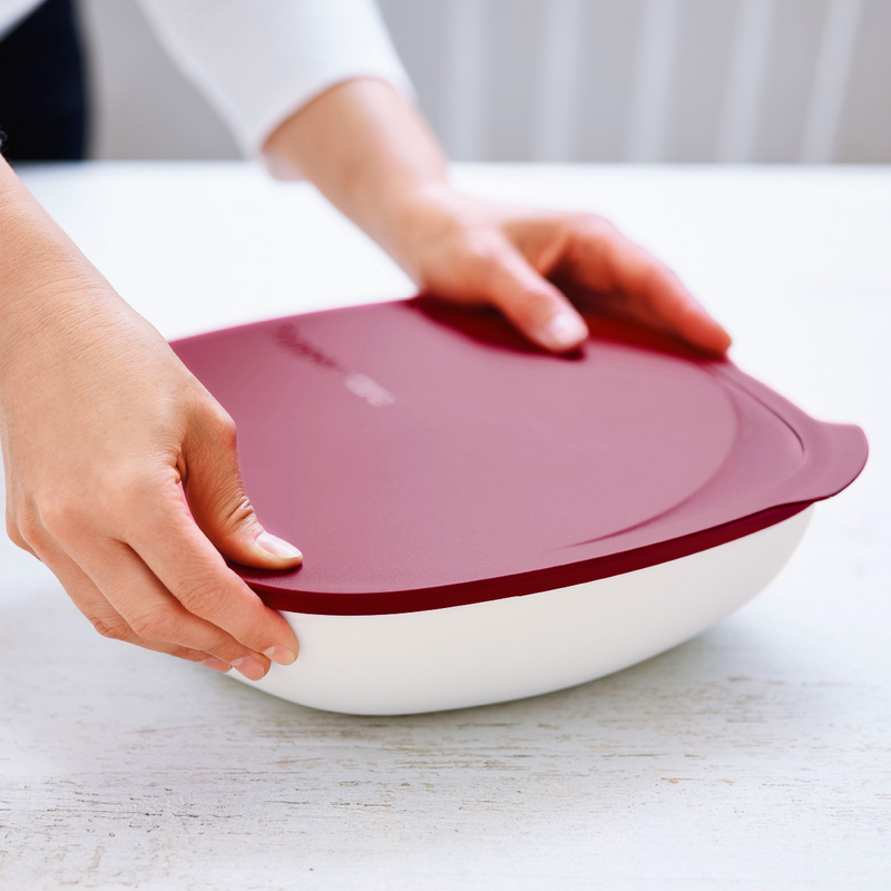 - Met het goed sluitende deksel kunnen koude gerechten, zoals salades, voorgerechten of desserts, vers worden gehouden en na bereiding rechtop worden afgevoerd. Daarnaast blijven chips, snacks en koekjes knapperig.