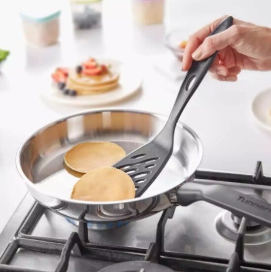De Tupperware keukenvrienden / hulpjen zijn ontworpen om anti- aanbaklagen niet te beschadigen of te krassen. Ergonomisch handvat: gebogen voor duimcomfort, voor een comfortabele en veilige grip. Gaatje voor het ophangen van keukengerei. Bestand tegen temperaturen tot 200°C, maar niet in hete pannen laten liggen.