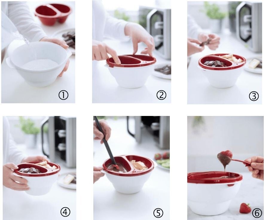 ♒Een basis die werkt als een au bain Marie om chocolade te smelten. Vul het met water en kook het in de magnetron.