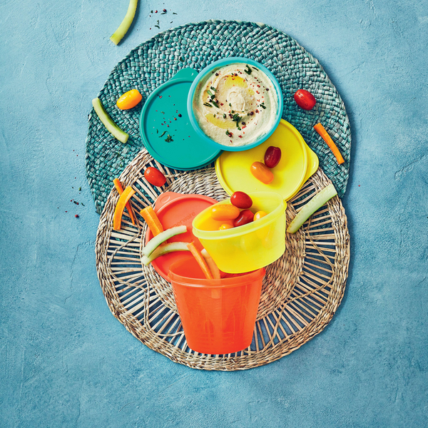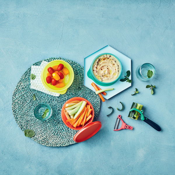 Deze kommenset kun je voor van alles gebruiken. Denk aan nootjes, chips, paaseitjes, druiven, koekjes etc. Alles blijft er vers in, maar is ook makkelijk voor een hapje onderweg. Een rauwkost salade met tomaatjes, komkommer, ei, sla etc