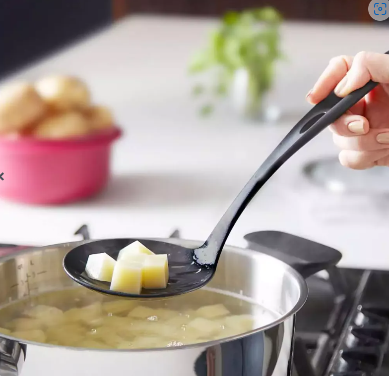 De Tupperware keukenvrienden / hulpjen zijn ontworpen om anti- aanbaklagen niet te beschadigen of te krassen. Ergonomisch handvat: gebogen voor duimcomfort, voor een comfortabele en veilige grip. Gaatje voor het ophangen van keukengerei. Bestand tegen temperaturen tot 200°C, maar niet in hete pannen laten liggen.