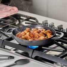 - De gietijzeren braadpan biedt uitzonderlijke culinaire prestaties dankzij uitstekend warmtebehoud en een gelijkmatige warmteverdeling