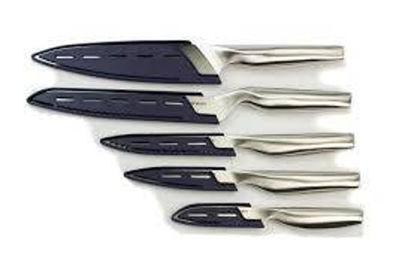 Ben je op zoek naar een messenset die niet alleen voldoet aan al je culinaire behoeften, maar ook stijl toevoegt aan jouw keuken? Zoek niet verder! De Tupperware Mastro Messenset combineert uitzonderlijke prestaties met een tijdloos design, waardoor het een essentiële toevoeging is aan elke keuken. Met hoogwaardig Duits roestvrij staal blinken deze Tupperware messen uit in kracht, duurzaamheid en scherpte. Daarnaast zijn de messen ook nog corrosiebestendig. Elk mes van de Mastro serie is zorgvuldig ontworpen met ergonomie in gedachten, waardoor ze comfortabel en gemakkelijk te hanteren zijn voor elke snijtaak. De Tupperware Mastro Messenset bestaat uit 5 perfecte messen voor jouw keuken.