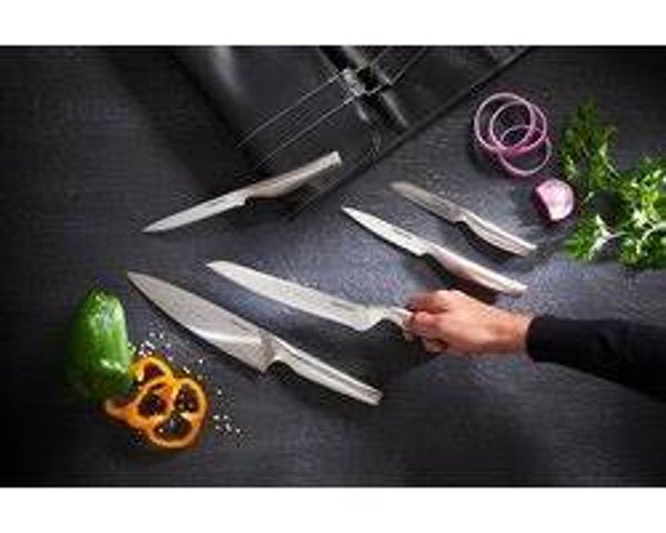 - Doordacht design: ontworpen uit één stuk, het lemmet loopt geleidelijk naar het handvat toe, wat het schoonmaken makkelijker maakt en de messen een modern, professioneel en tijdloos design geeft.
