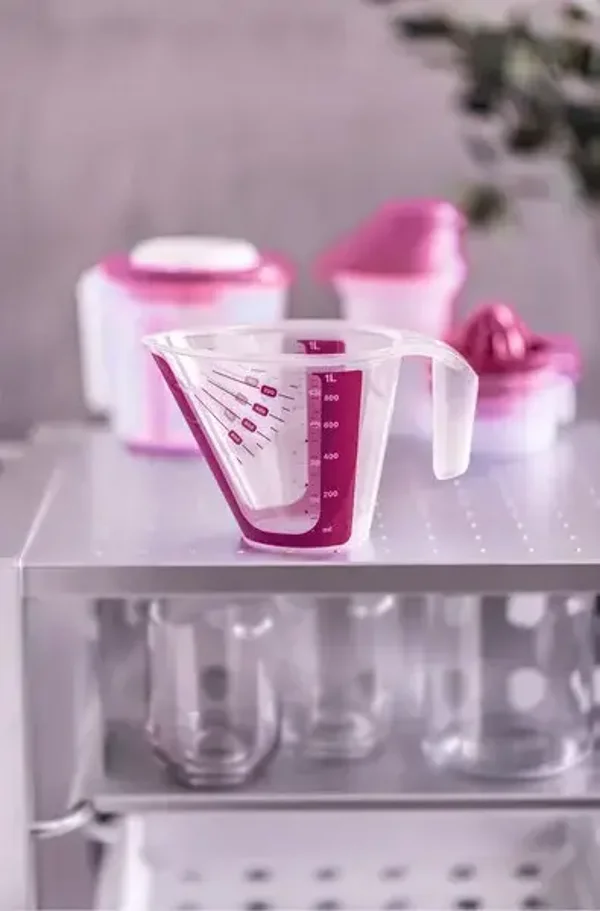 De Tupperware Maatbeker 1 l is ideaal voor het nauwkeurig afmeten en uitgieten van ingrediënten bij het bereiden van je recepten. De Tupperware Maatbeker 1 l is onmisbaar voor iedereen die graag kookt of bakt. Met zijn transparante en krasbestendige ontwerp met verschillende maataanduidingen biedt deze maatbeker altijd zicht op de inhoud, waardoor het nauwkeurig afmeten en uitgieten van ingrediënten een fluitje van een cent wordt.