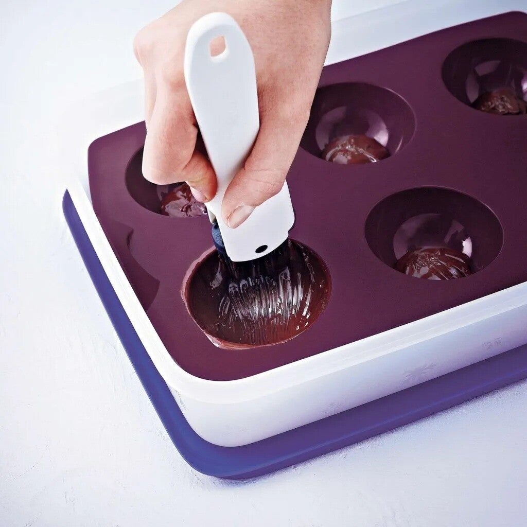 Verassingsbollen gemaakt met 2 domes op elkaar met vulling of van 2 verschillende soorten chocolade!
