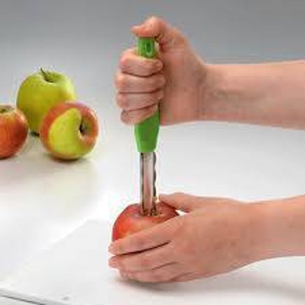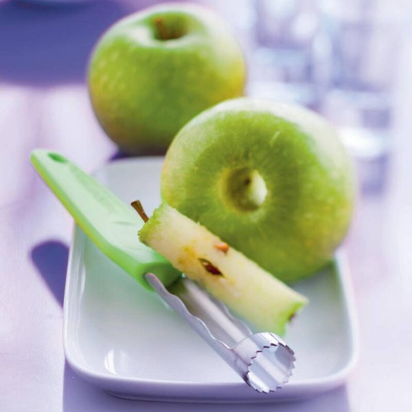 Met de Tupperware appelboor kunt u zeer eenvoudig en zonder moeite, het klokhuis eruit halen. Het handvat heeft nl een inkeping waarop u uw duim kan laten rusten tijdens gebruik. Daardoor heeft u een goede handgrip.