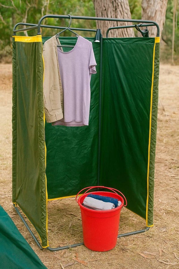 * Bewaar er je kledij, horloge en handdoek droog in bij het douchen in vaak te krappe douchehokjes op de camping.