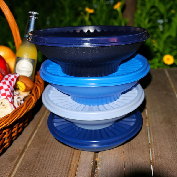 Tupperware Zonnedekschalen set (4) vintage blauw sterdeksel 500ml