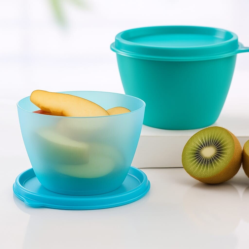 Het Tupperware Koelkastkommetje is het perfecte afsluitbare bakje voor kleinere porties voor in de koelkast of voor onderweg met een inhoud van 380 ml, die je kunt gebruiken om voedsel vers te houden of makkelijk mee te nemen. De bakjes sluiten lucht- en waterdicht af, waardoor ze geschikt zijn voor zowel het vervoeren van snacks zoals muesli, yoghurt, fruitsalade, gesneden groenten en kleine restjes van je laatste maaltijd.