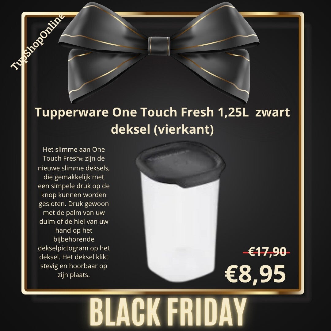 Tupperware One Touch Fresh 1,25L zwart deksel (vierkant) Black Friday