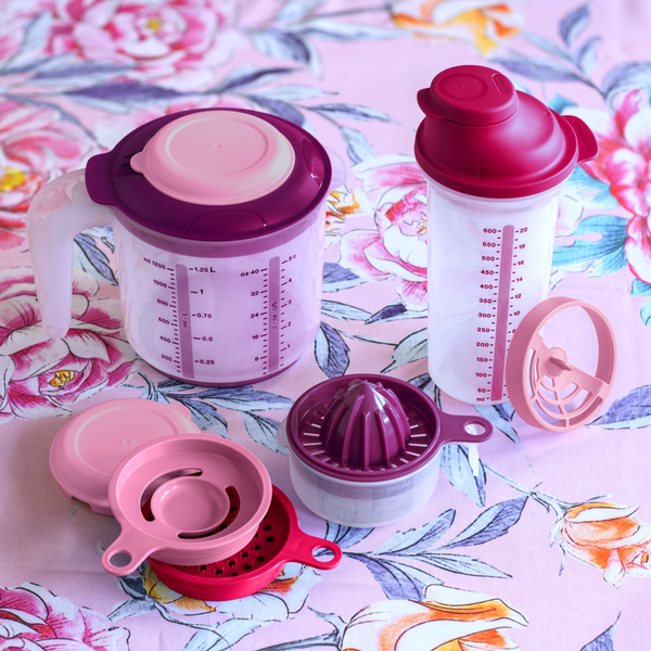 3 slimme functies in één product: rasp en fruitpers. Daarnaast dient de pot met schaal als mini maatbeker. Bijzonder praktisch: De keukenparel is perfect te combineren met Mix n Meet 1.25L en Shaker.
