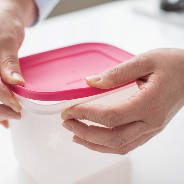 In de vriezer kunnen ze ruimtebesparend modulair worden gestapeld en nog meer ruimtebesparend in elkaar worden geplaatst wanneer ze niet in gebruik zijn. Flexibel materiaal en een conische containervorm zorgen voor de beste vriesresultaten en eenvoudige hantering. Bovendien minimaliseert de Color Control-afdichting van het binnenoppervlak verkleuring.