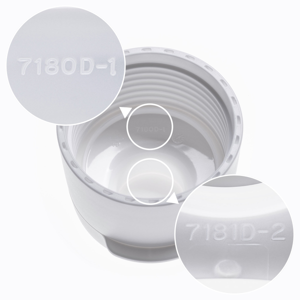 Afmetingen:Dop van 1,0 l: ∅ (zonder klep) ca. 5,4 cm