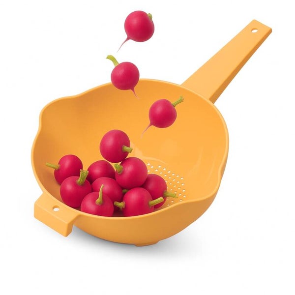Ons nieuwe grote handvergiet is perfect voor het wassen en uitlekken van fruit zoals aardbeien, pruimen en groenten zoals tomaten of radijsjes, of voor het afgieten van fruit-/groentepotten en conserven. Je kunt het ook gebruiken om tonijn of sardines te laten uitlekken.